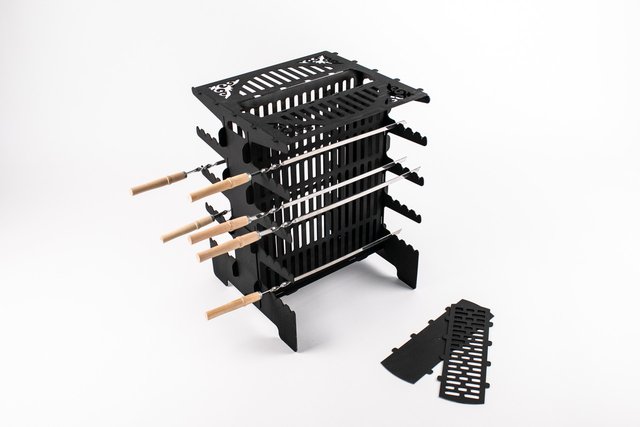 - Универсальность: подходит для шампуров, решёток и даже для гриля-корзин.